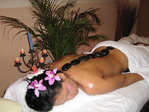 Massage wird mit Basaltsteinen gearbeitet, welche vor der Behandlung
